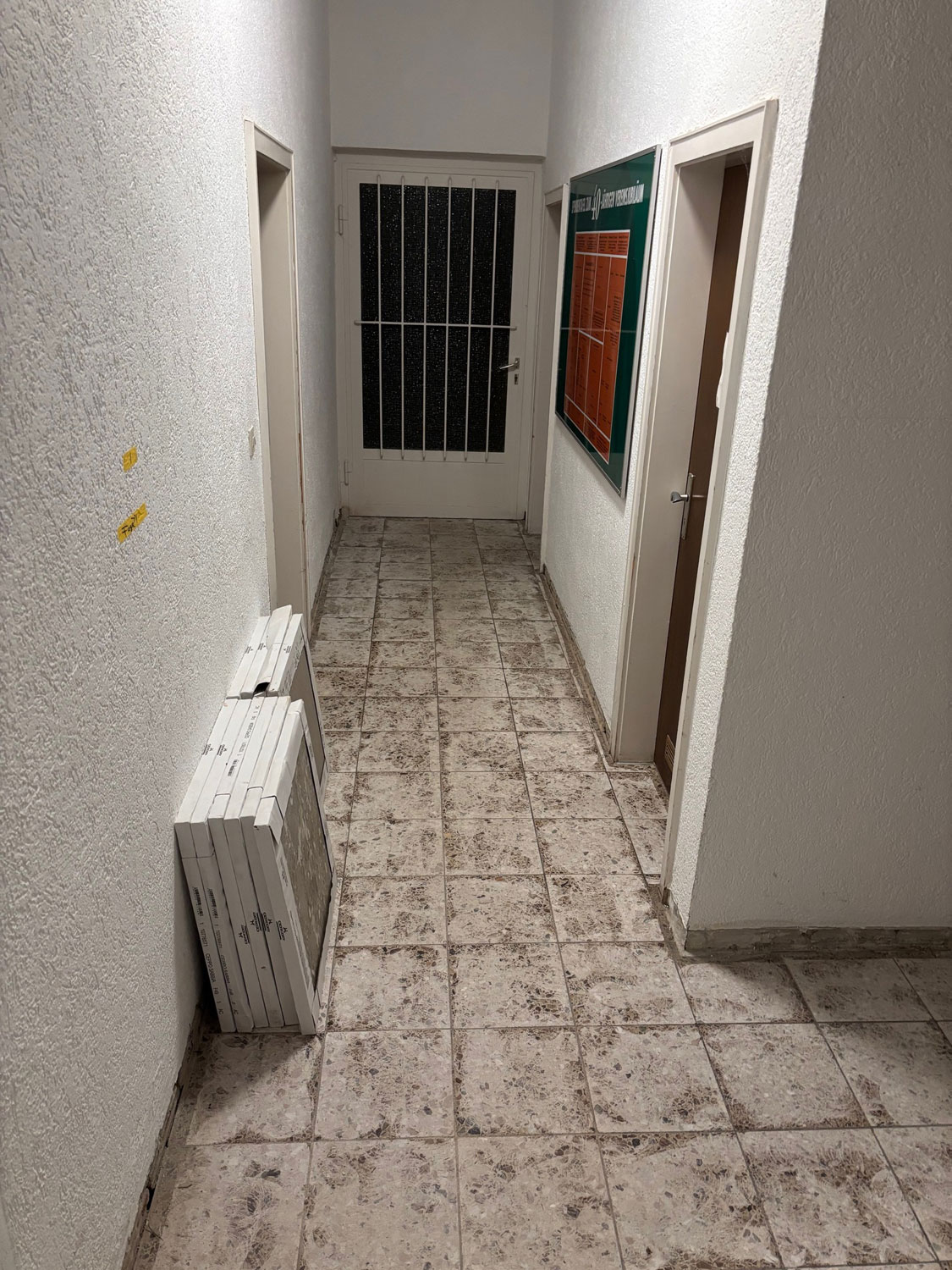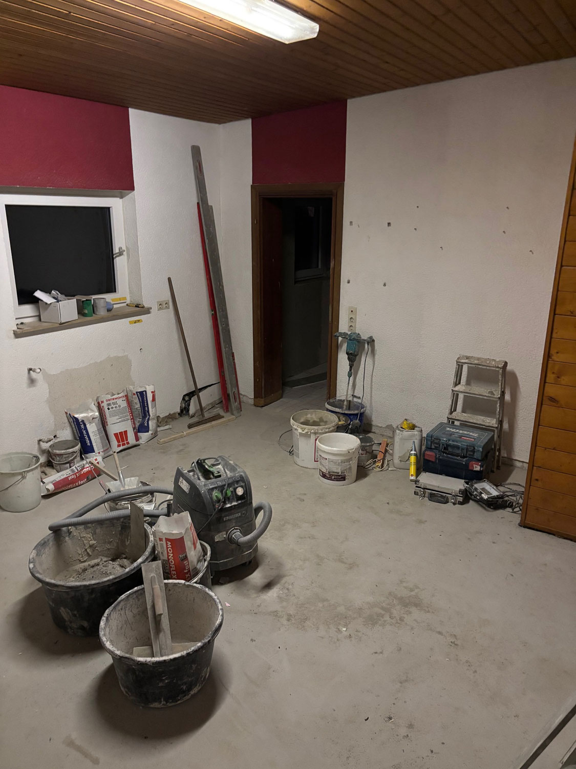 Die Renovierung der Duschen, Kabinen und den Fluren schreitet voran. Nach den Installationsarbeiten der Firma Habitzreither legt nun der Fliesenleger los.